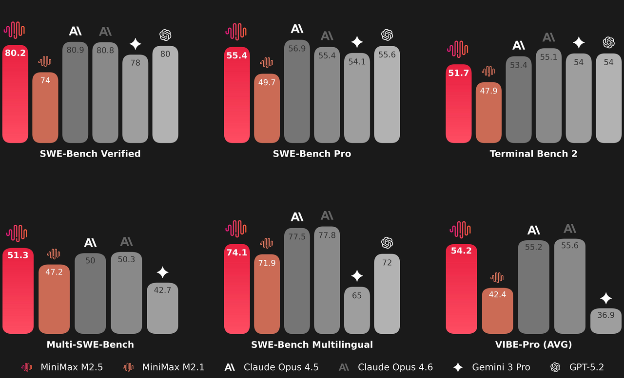 - On OpenCode: 76.1(M2.5) > 75.9(Opus 4.6)