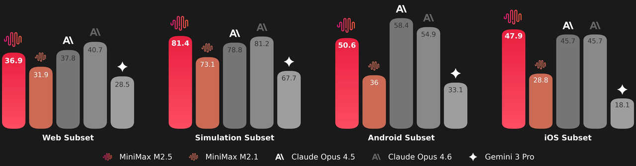 - On Droid: 79.7(M2.5) > 78.9(Opus 4.6)