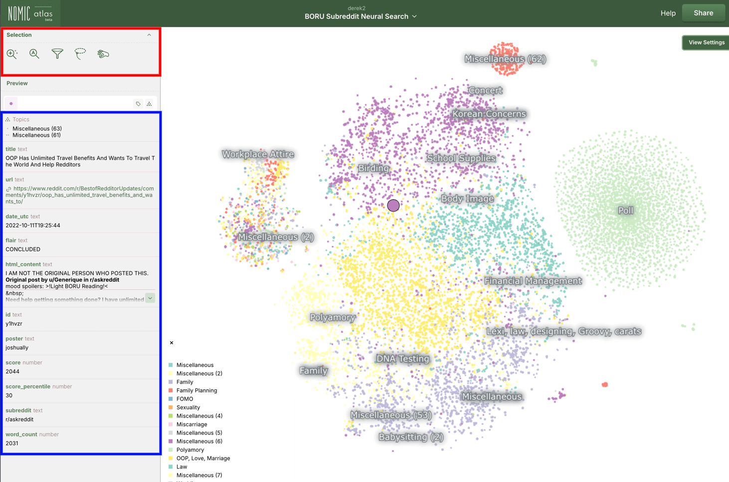 Using Nomic Atlas should be pretty self-explanatory and you can find some further documentation here. But I'll give a quick intro so I can then highlight some of the lesser known features.