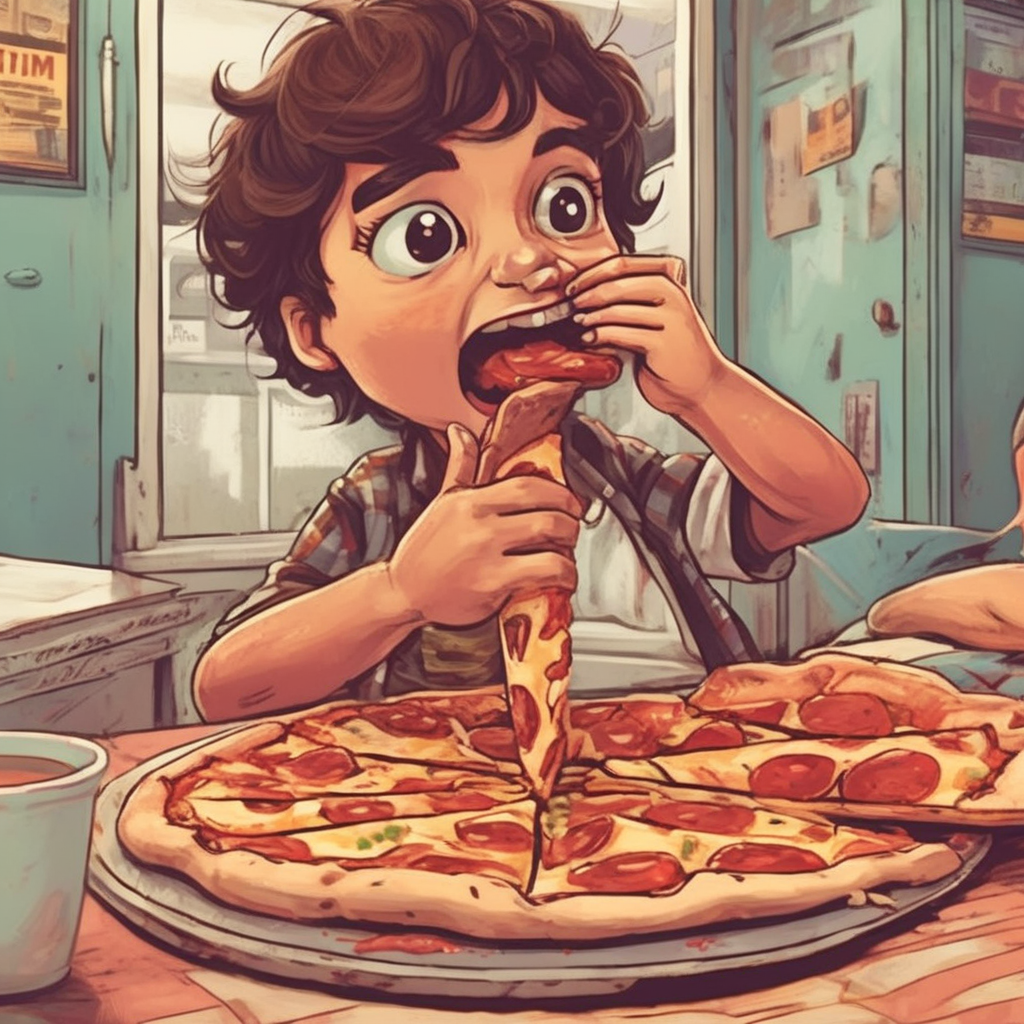 prompt = "A cute cnmt eating a slice of pizza, stunning color scheme, masterpiece, illustration"