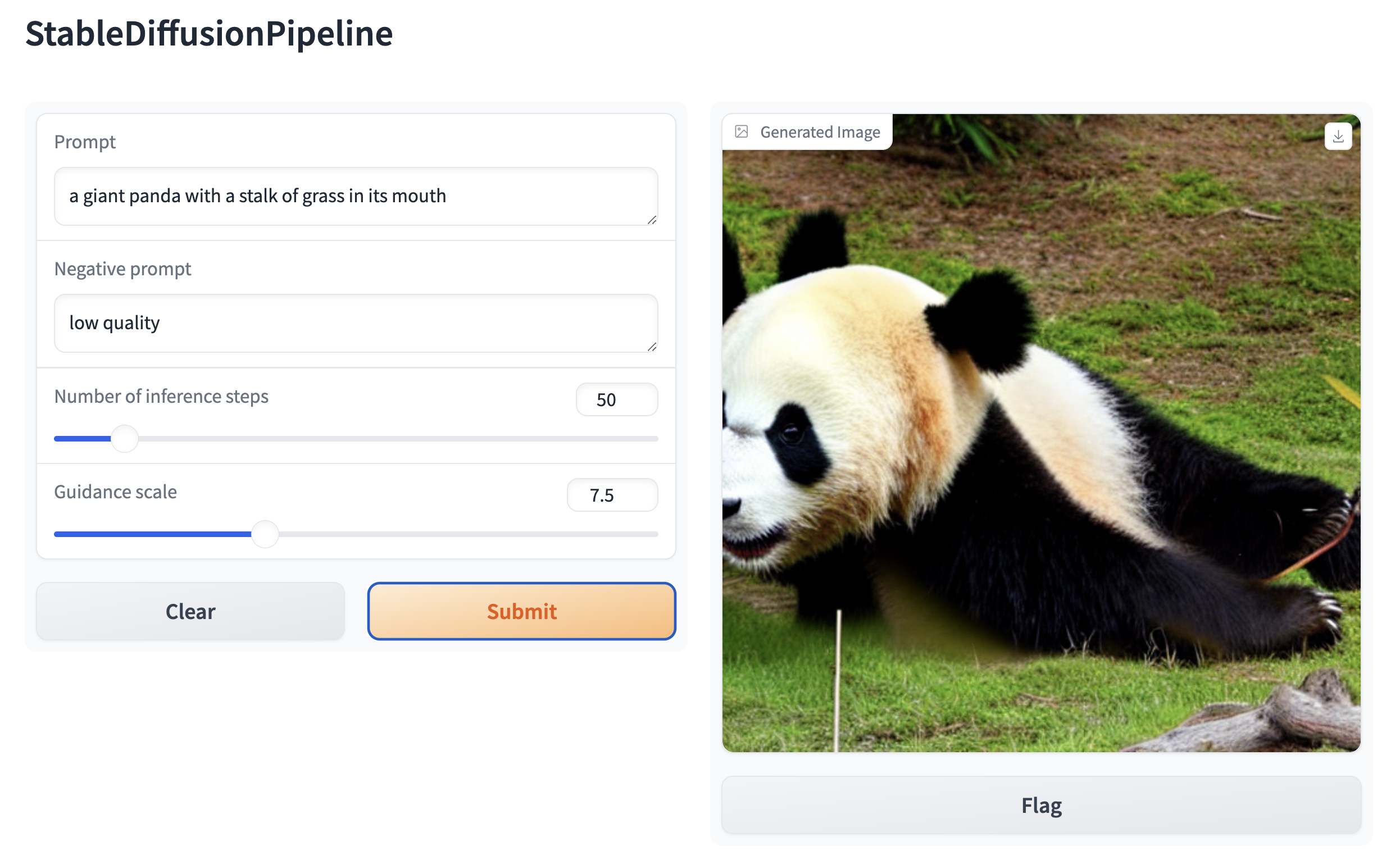 Then, create a web demo around any Stable Diffusion-based pipeline. For example, you can create an image generation pipeline in a single line of code with Gradio’s Interface.from_pipeline function: